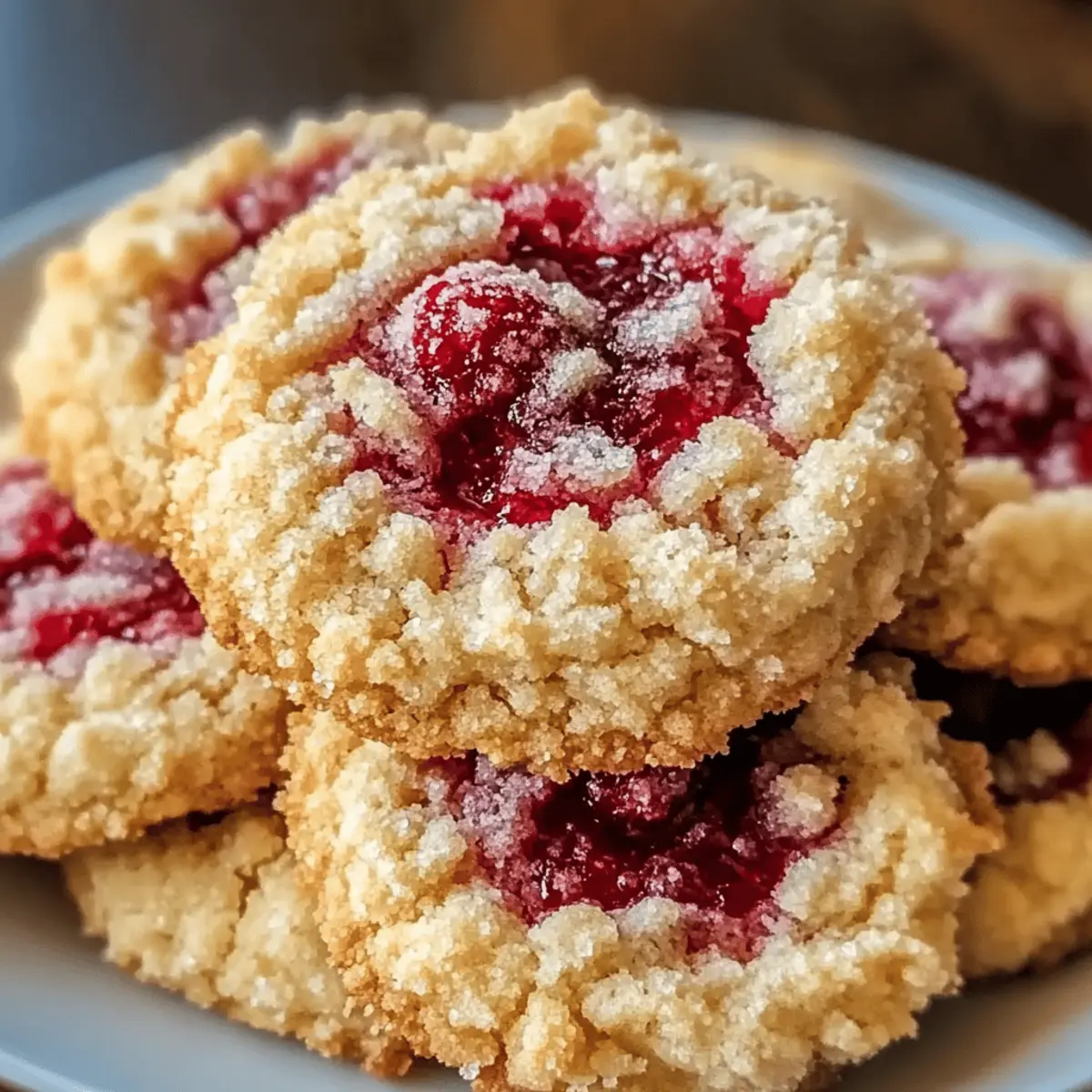 Buttery Raspberry Crumble Cookies are perfect for busy home cooks looking to save time without sacrificing flavor! You can prepare the cookie dough up to 24 hours in advance; simply form the dough balls and refrigerate them in an airtight container. This not only helps maintain their texture but also allows the flavors to meld beautifully. Alternatively, you can fill the cookie centers with raspberry jam and refrigerate the unbaked cookies for up to 3 days. When you’re ready to bake, just pop them in the preheated oven as instructed and enjoy the same delicious homemade results, making your baking experience even more delightful!