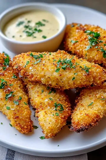 Crispy Parmesan-Crusted Chicken Tenders with Garlic Dip Delight
