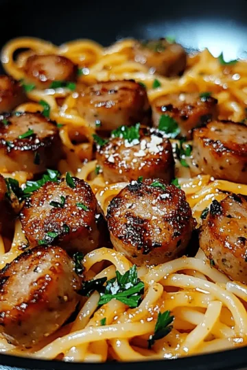 Sticky Honey Garlic Sausage Pasta Skillet That's Quick & Delicious