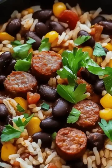 Satisfying Spicy Sausage and Black Beans with Rice Delight