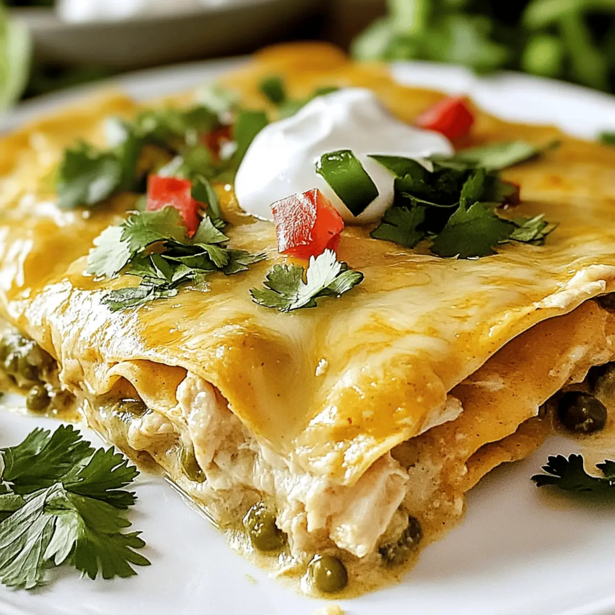 These Creamy Green Chile Chicken Enchilada Casserole are perfect for meal prep enthusiasts! You can assemble the entire casserole up to 24 hours in advance; simply cover it tightly with foil and refrigerate. The enchilada flavors meld beautifully overnight, enhancing the taste. If you're looking to prep even further ahead, you can freeze the unbaked casserole for up to 3 months. Just ensure it's well-wrapped to prevent freezer burn. When you're ready to serve, bake the frozen casserole directly from the freezer, adding a bit more time to the cooking process—typically an additional 15-20 minutes. You'll have a delicious, stress-free family dinner that tastes just as fresh as if made that day!