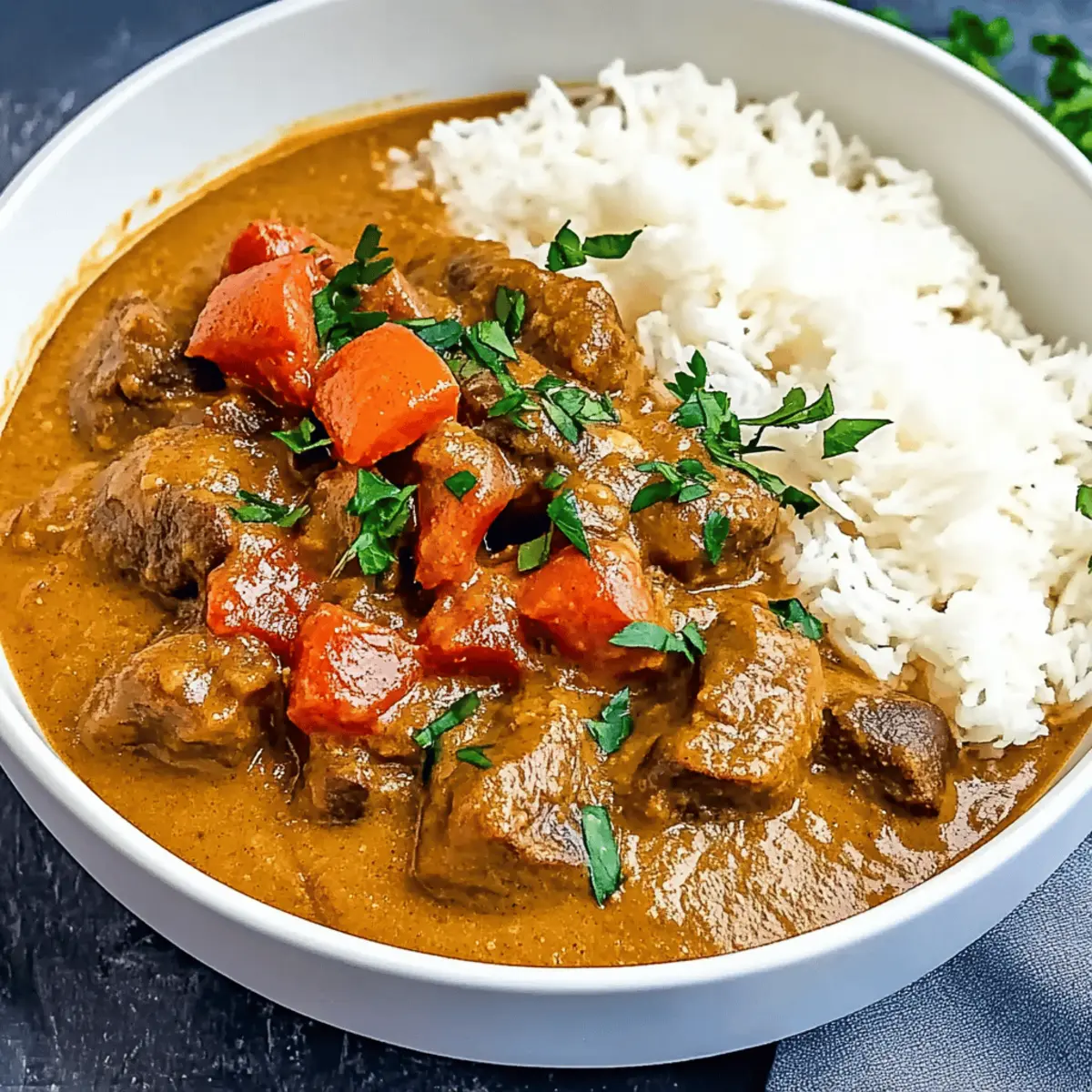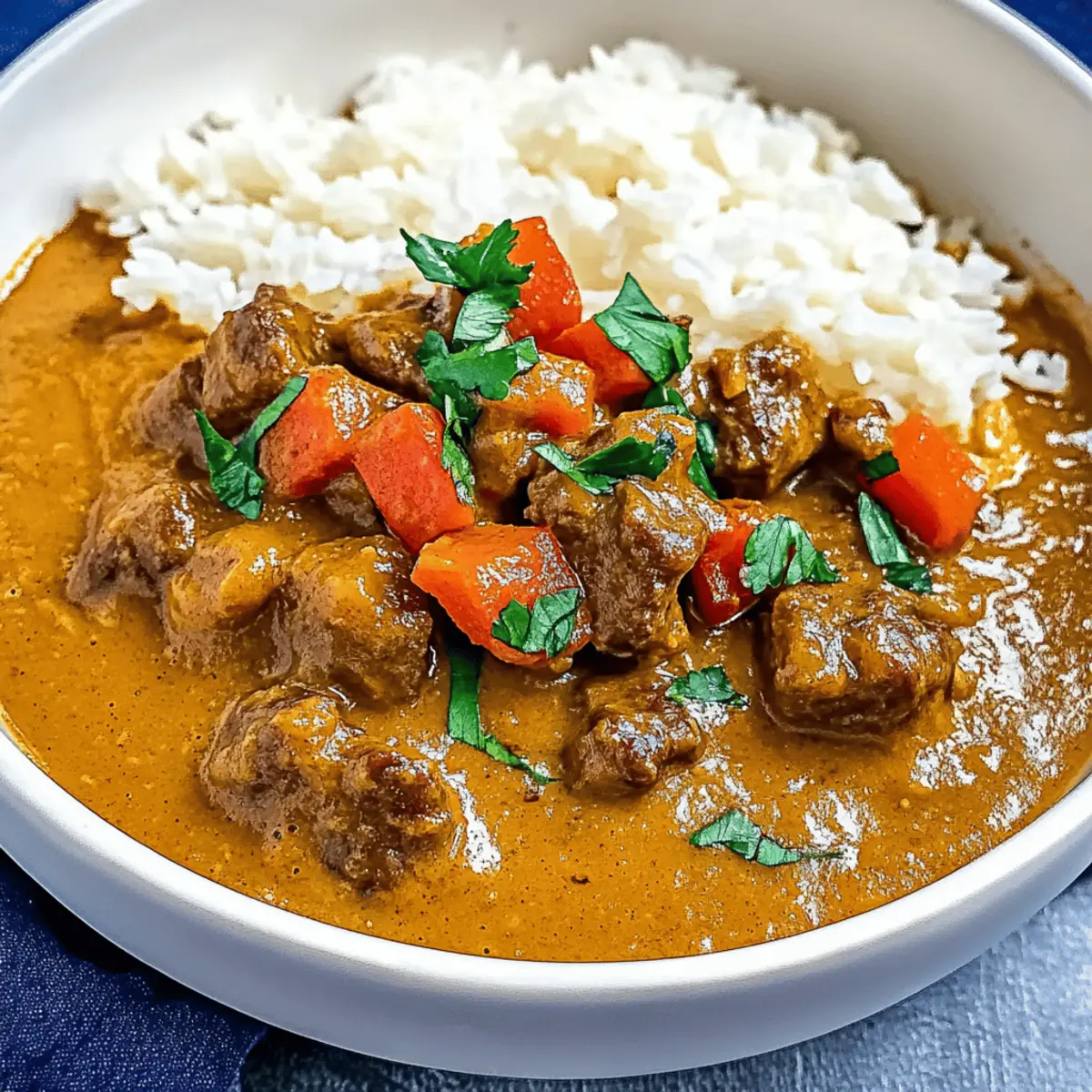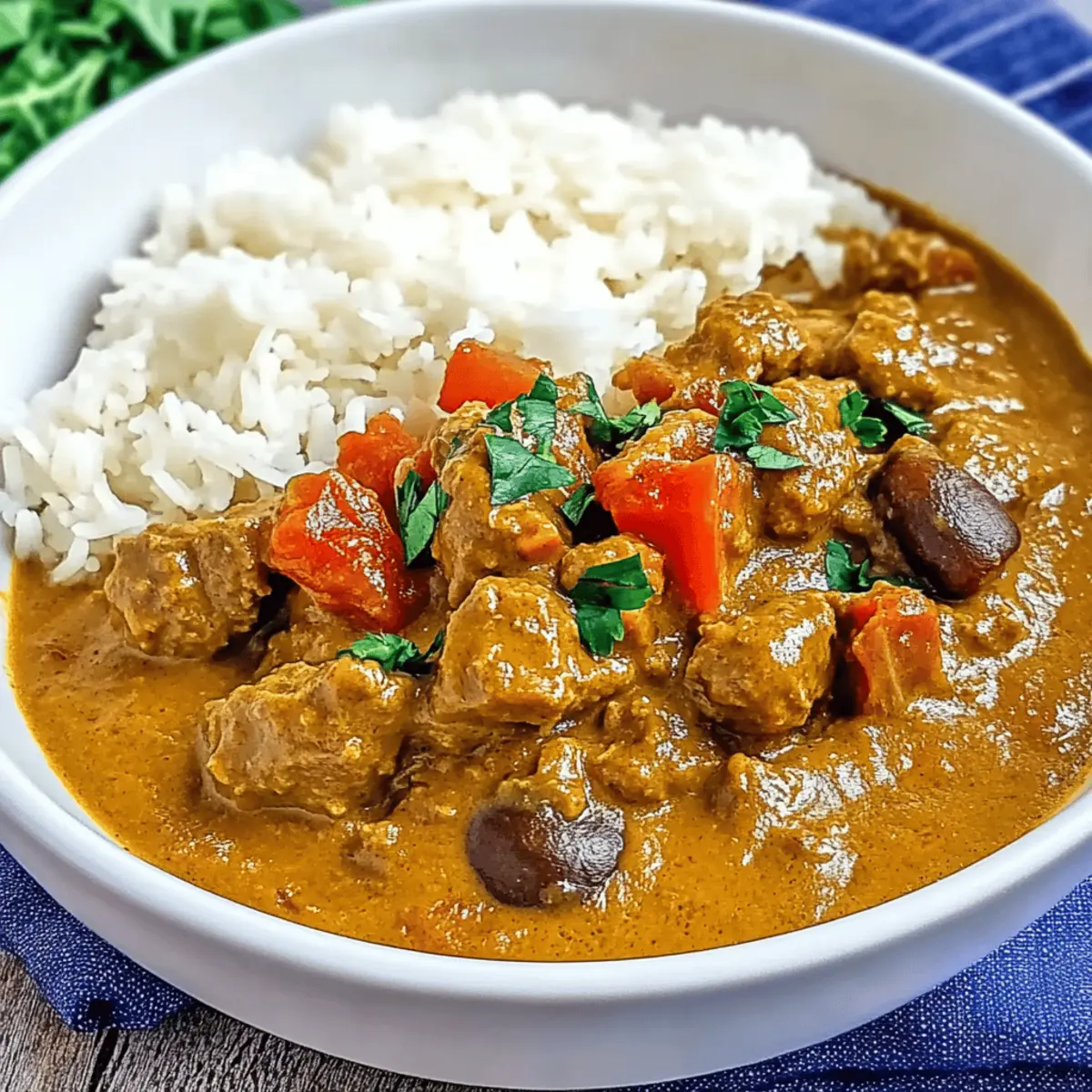 Start by washing the stew beef thoroughly under cold water. Cut it into small, uniform pieces to ensure even cooking. Pat the beef dry with a paper towel, then set it aside. Having the beef ready allows for a smoother cooking process as you begin your hearty Creamy Senegalese Peanut Stew.