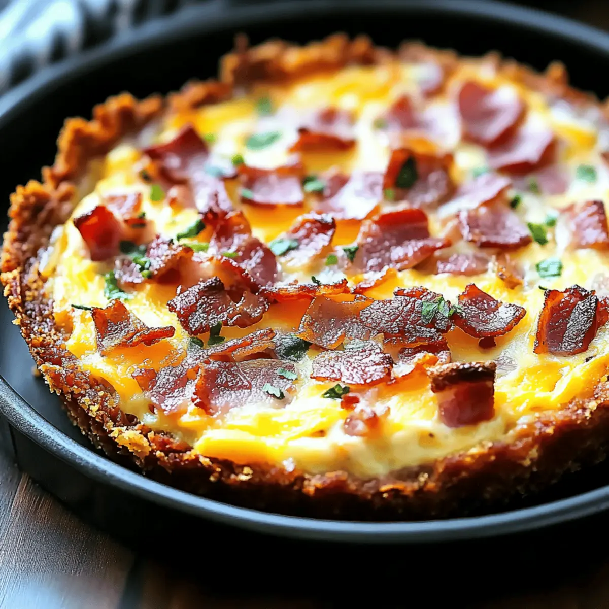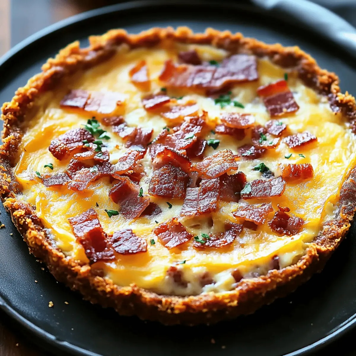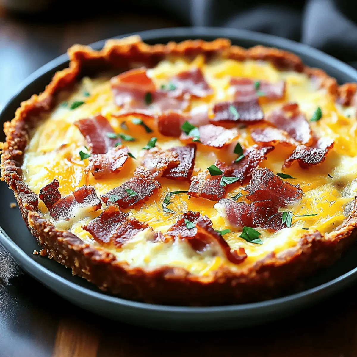 As I stood in my kitchen, the aroma of sizzling bacon danced around me, instantly transporting me to blissful brunches past. This Hash Brown Crust Bacon and Cheddar Quiche is more than just a dish; it's a delightful experience that combines the satisfying crunch of a golden-brown hash brown crust with a creamy, savory filling. Not only is this quiche a gluten-free and low-carb gem, but it also boasts an easy preparation that makes it perfect for busy mornings or leisurely weekend gatherings. The best part? It’s bound to impress your guests and keep your family coming back for more. Are you ready to elevate your breakfast game with this irresistible quiche recipe?