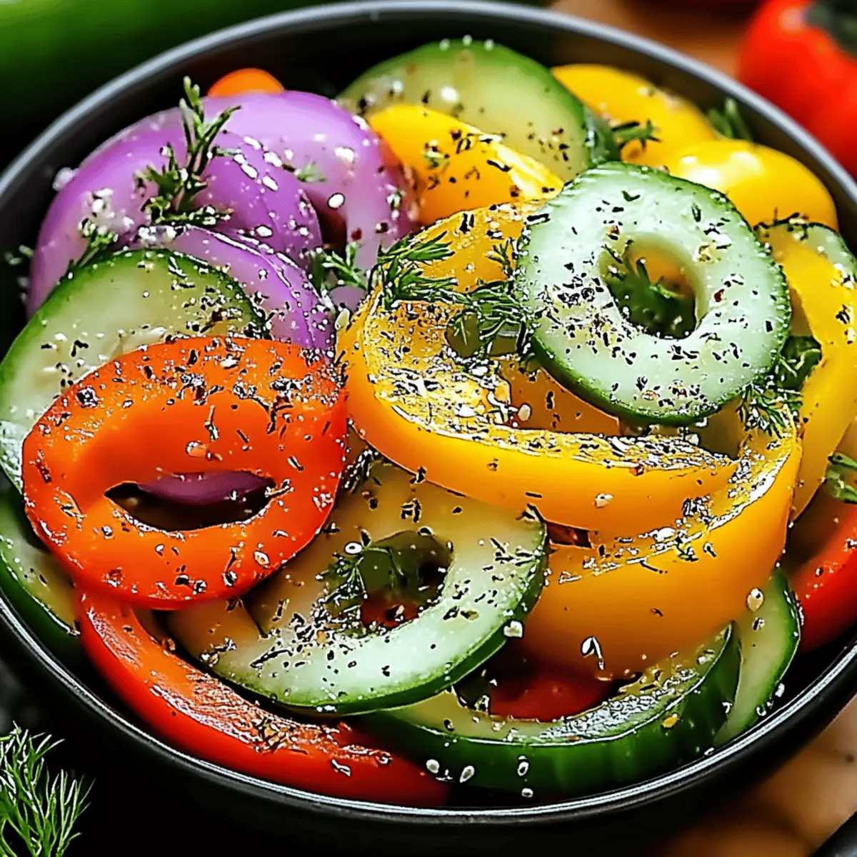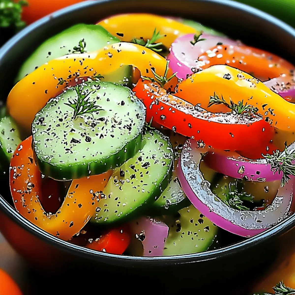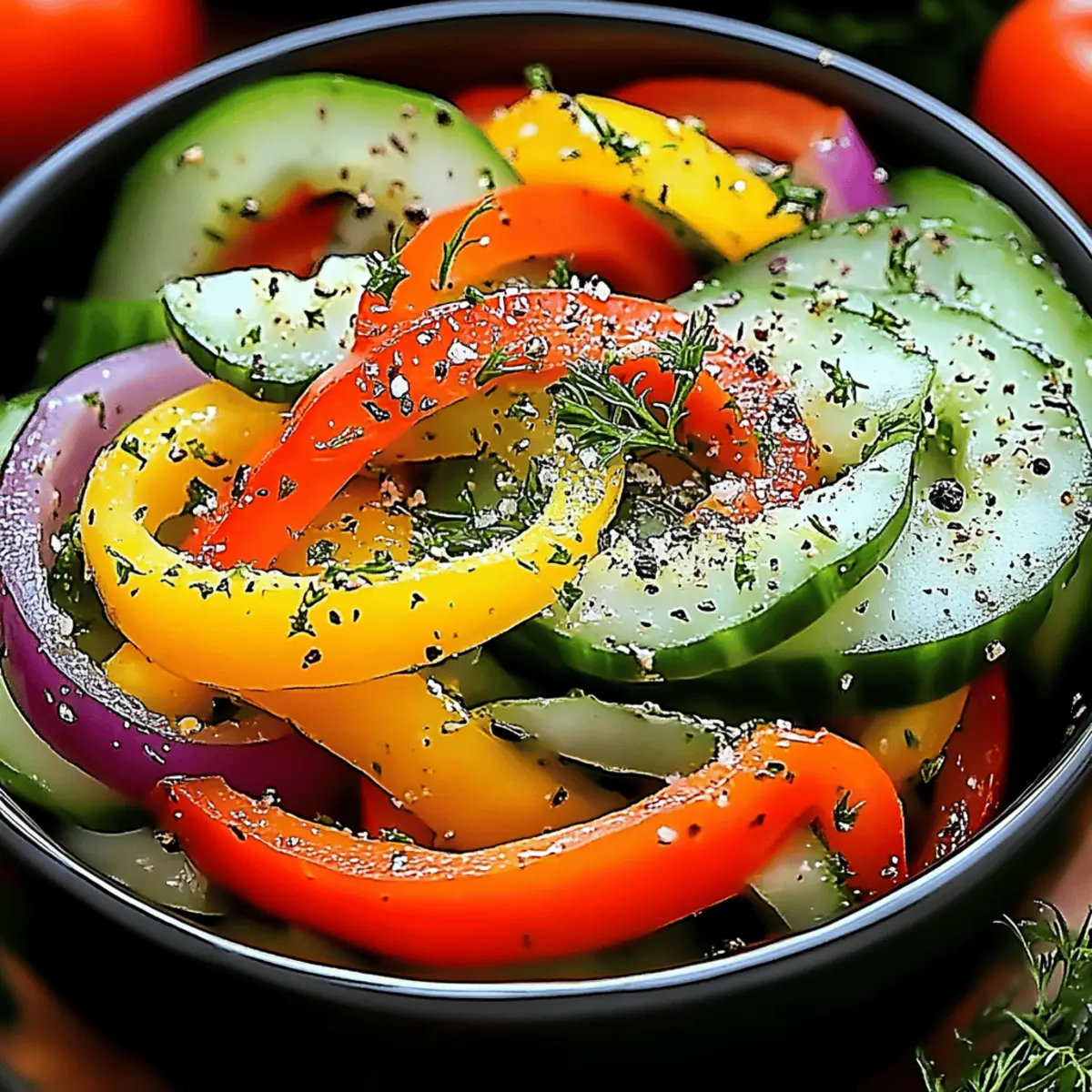 A burst of color greets you as you slice into fresh cucumbers and sweet peppers, instantly lifting your mood. My go-to for those balmy evenings is this Quick & Refreshing Cucumber Sweet Pepper Salad. In just 15 minutes, you’ll have a light meal or vibrant side that’s not only vegetarian but also packed with fresh, invigorating flavors. Whether it accompanies a hearty main course or stands alone as a satisfying snack, its crisp textures and zesty dressing make it a must-have. Plus, it’s surprisingly customizable—add your favorite herbs or a sprinkle of nuts for that extra flair! I can't wait for you to experience that crunchy garden-fresh delight. What fun twists will you add to make it your own?