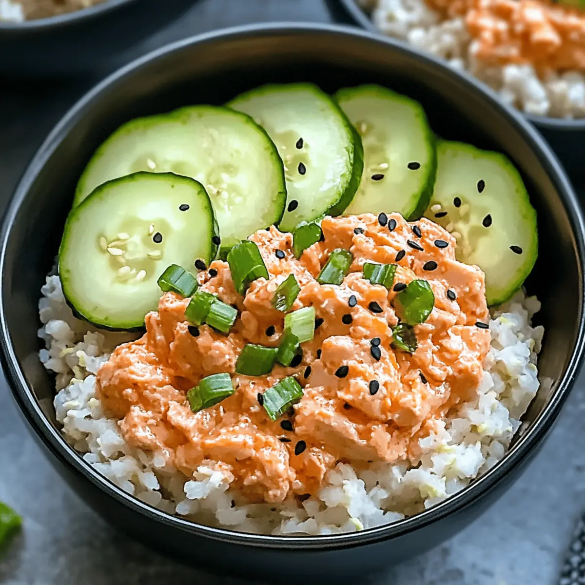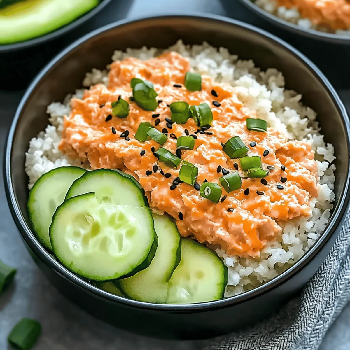 These Low-Carb Spicy Tuna Bowls with Cauliflower Rice are perfect for meal prep enthusiasts! You can prepare the cauliflower rice and tuna mixture up to 3 days in advance. Simply steam 2 cups of cauliflower rice and drizzle it with seasoned rice vinegar, then store in airtight containers. For the tuna, mix canned tuna with mayonnaise, sriracha, and sesame oil, and refrigerate until needed. When you’re ready to enjoy your meal, just assemble the bowls by scooping the tuna over the cauliflower rice and adding fresh toppings like cucumber, sesame seeds, and scallions for that delightful crunch. This way, you’ll savor a delicious homemade dish with minimal effort, just as tasty and satisfying!