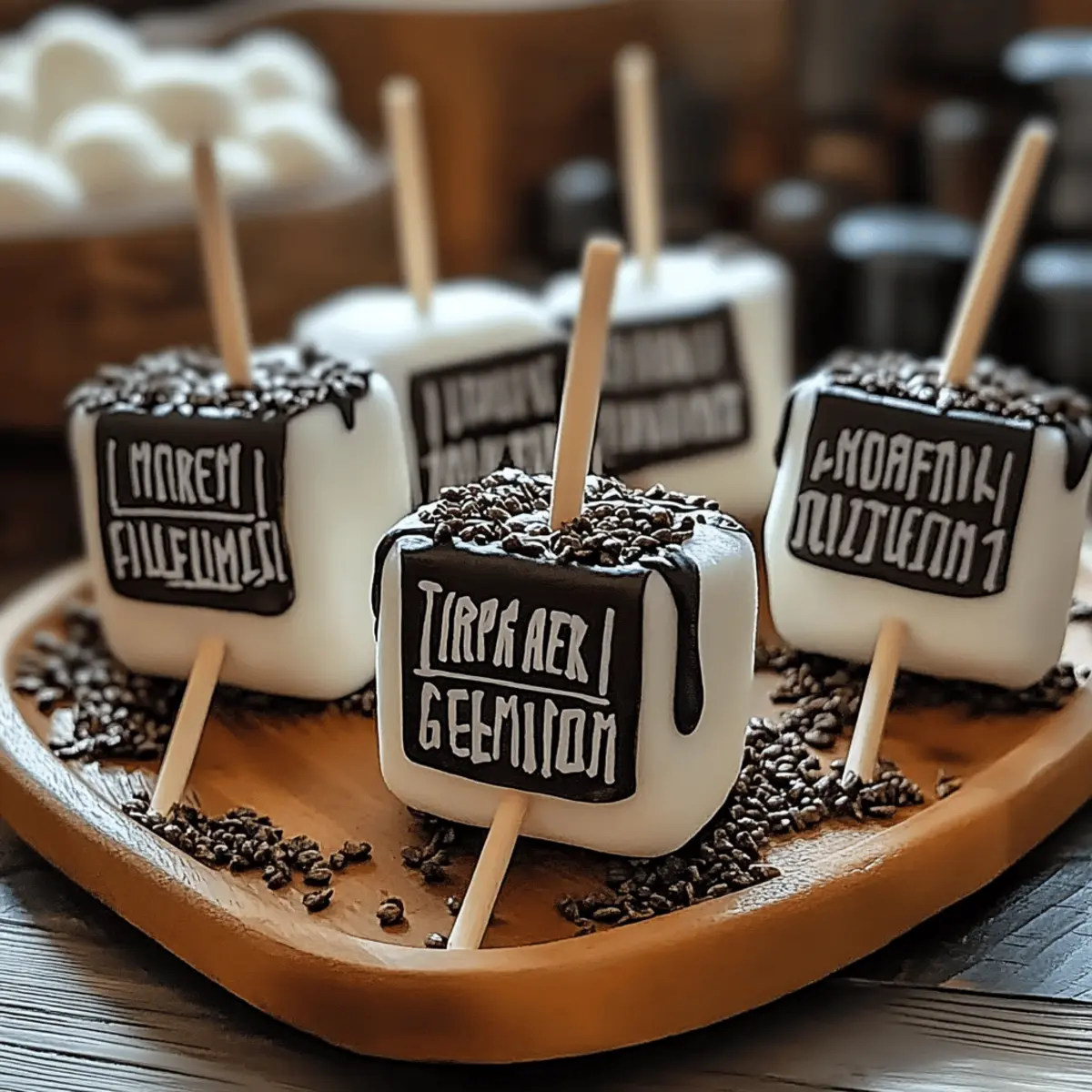 While the chocolate coating is still wet, it's time to get creative! Sprinkle edible black glitter over the chocolate-covered marshmallows and use white icing to draw cute tombstone designs. If desired, place candy pumpkins on top for an extra festive touch. The wet chocolate will help everything stick beautifully, allowing for a fun and spooky look.