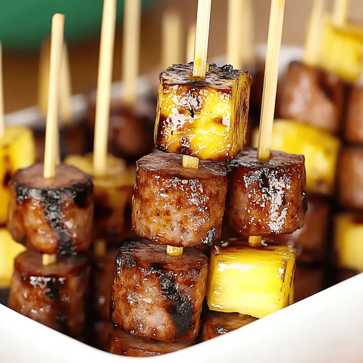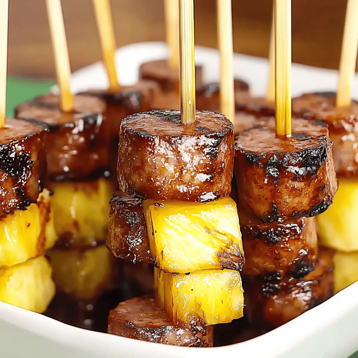Delight in these Sausage & Pineapple Appetizer Kabobs that combine sweet and savory flavors for a perfect summer treat.
