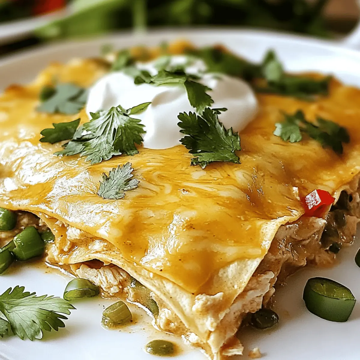 As I stood in my kitchen, the scent of toasted corn tortillas mingling with the creamy goodness of melted cheese filled the air, instantly transporting me to a cozy family gathering. This Creamy Green Chile Chicken Enchilada Casserole is everything you need for a quick weeknight dinner that satisfies even the pickiest eaters. With just a few simple ingredients, it magically transforms into a comforting, make-ahead dish that warms the soul. Plus, the beauty of this recipe lies in its versatility—you can easily swap in different proteins or make it vegetarian while still keeping it delicious. So, are you ready to dive into a dish that promises to bring not just flavor but also smiles around your dinner table? Let's get started!