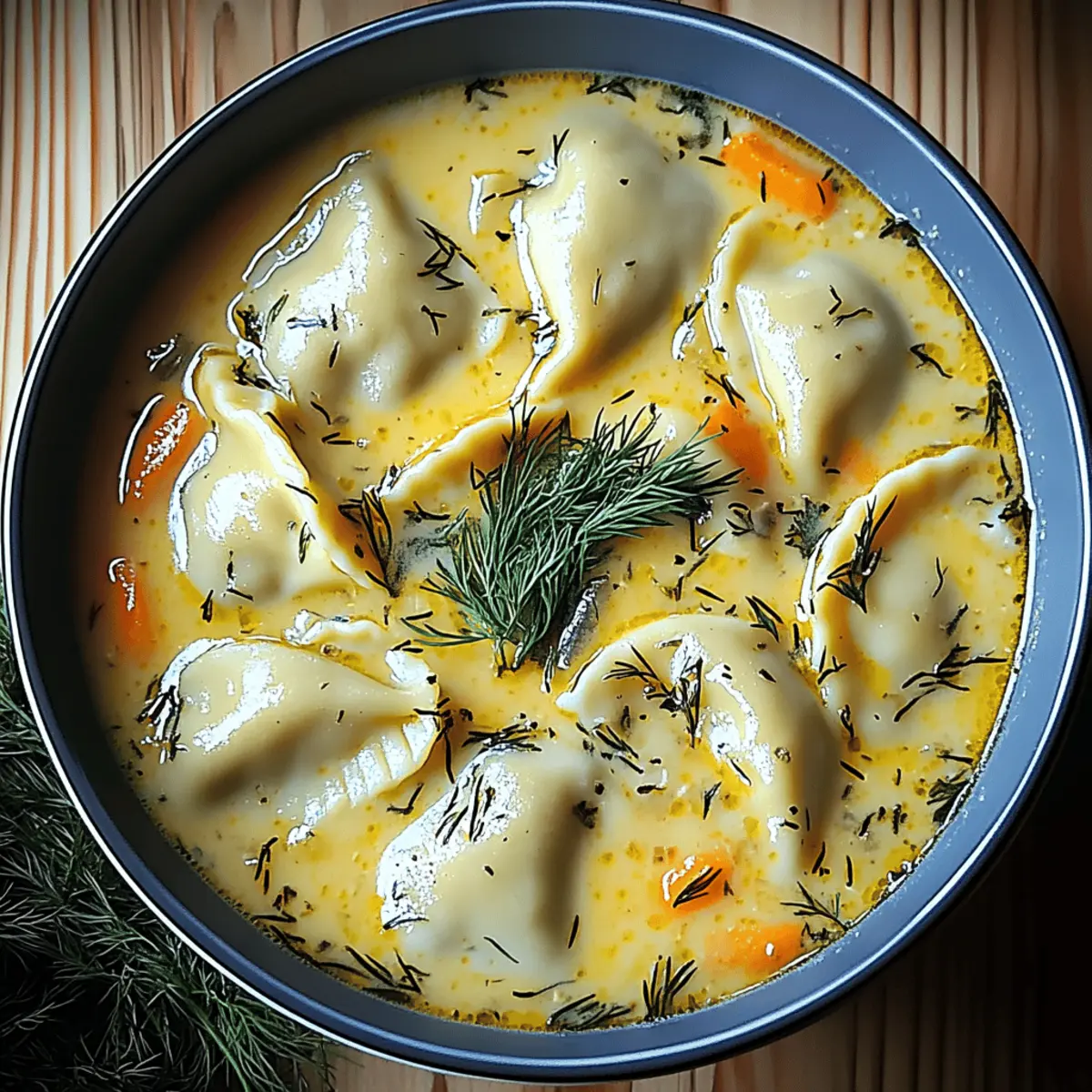 • Prepare a comforting bowl of Creamy Pierogi Dill Soup with these essential ingredients!