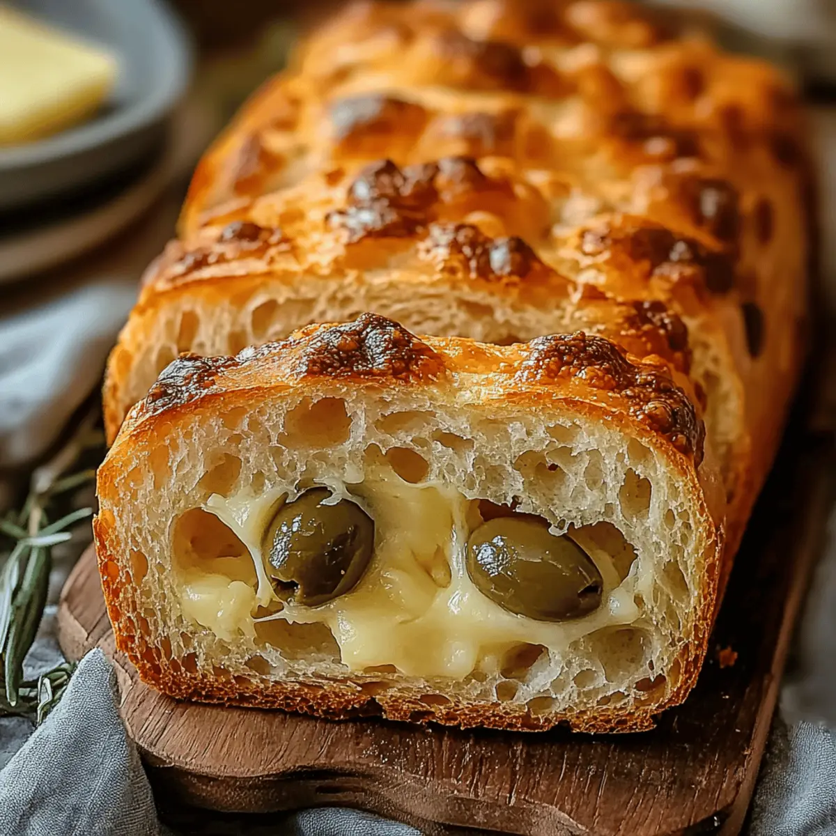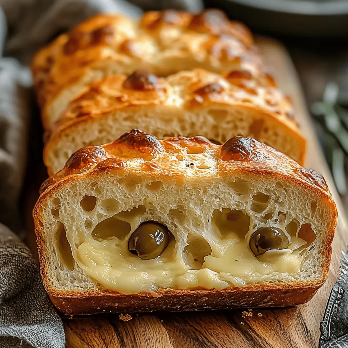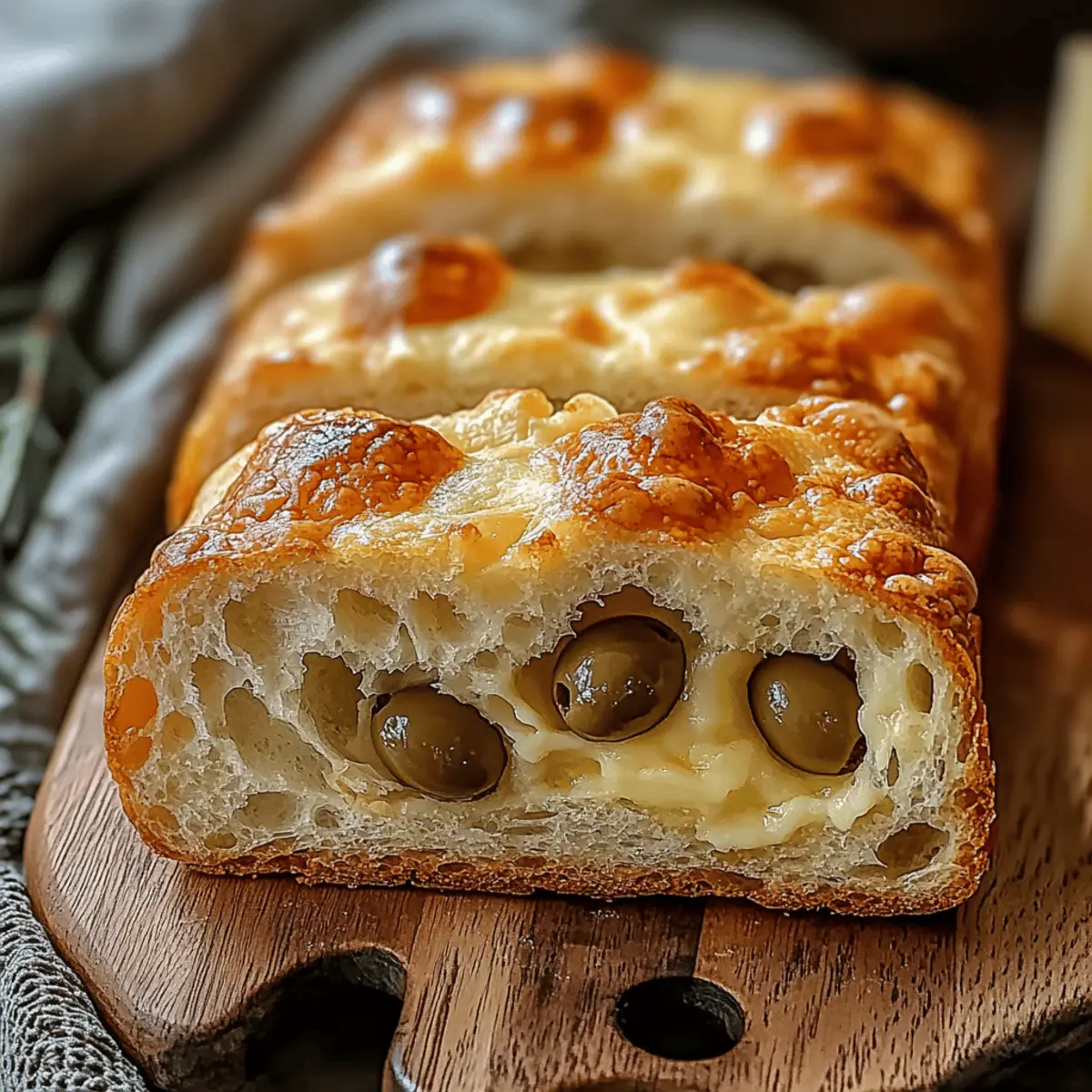 Savory Bliss: The harmonious blend of gooey cheese and briny olives elevates traditional bread to a gourmet delight that everyone will adore.