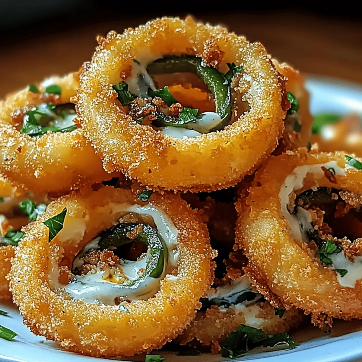 Get ready to elevate your appetizer game with these Crispy Jalapeño Popper Stuffed Onion Rings!