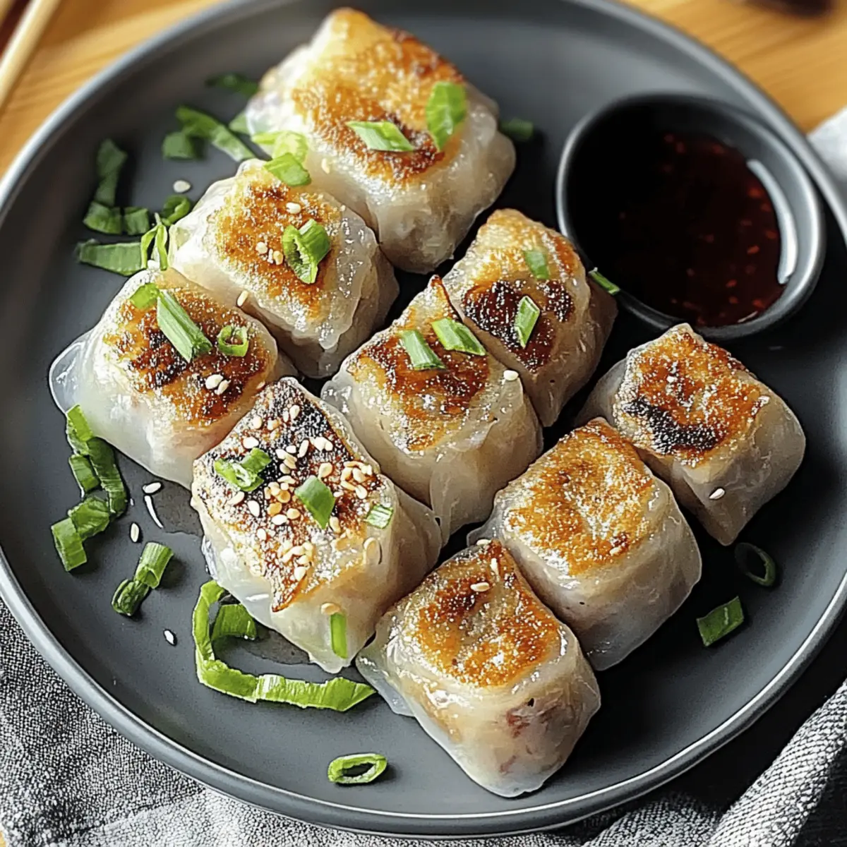 Once the dumplings are golden and crispy, remove them from the skillet and let them drain briefly on a paper towel. Serve the crispy rice paper dumplings warm alongside your dipping sauce for a tasty appetizer or main dish. These flavorful bites are perfect for sharing or as a satisfying solo treat!