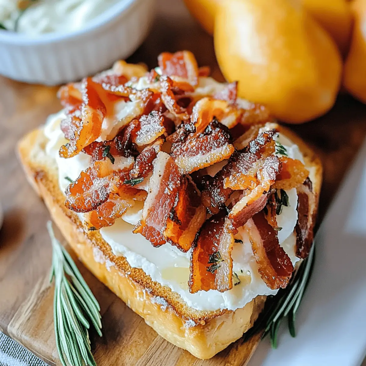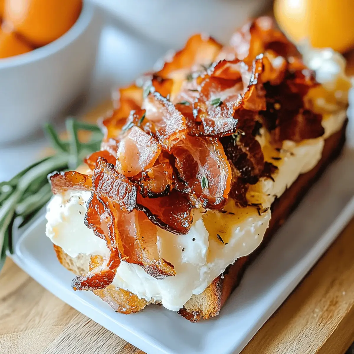 Reheating: When ready to enjoy, gently reheat the bacon in the oven at 350°F (175°C) until warmed through, ensuring the crispy texture remains intact before serving with crostini.