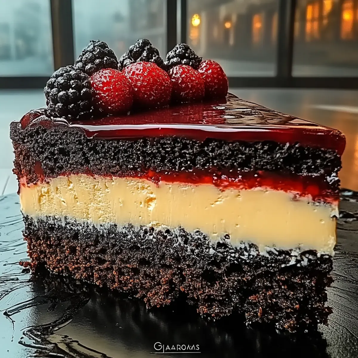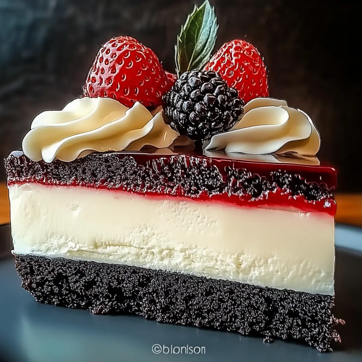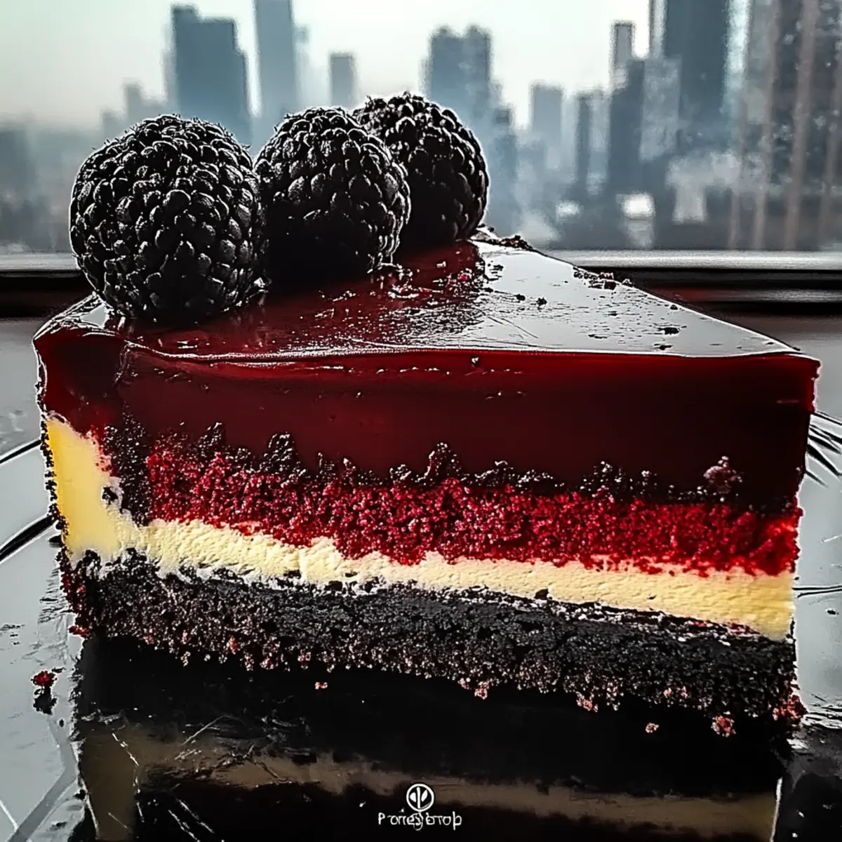 Stunning Presentation: Layers of vibrant red contrast beautifully with creamy cheesecake, creating a dessert that's as visually appealing as it is delicious—perfect for Instagram!