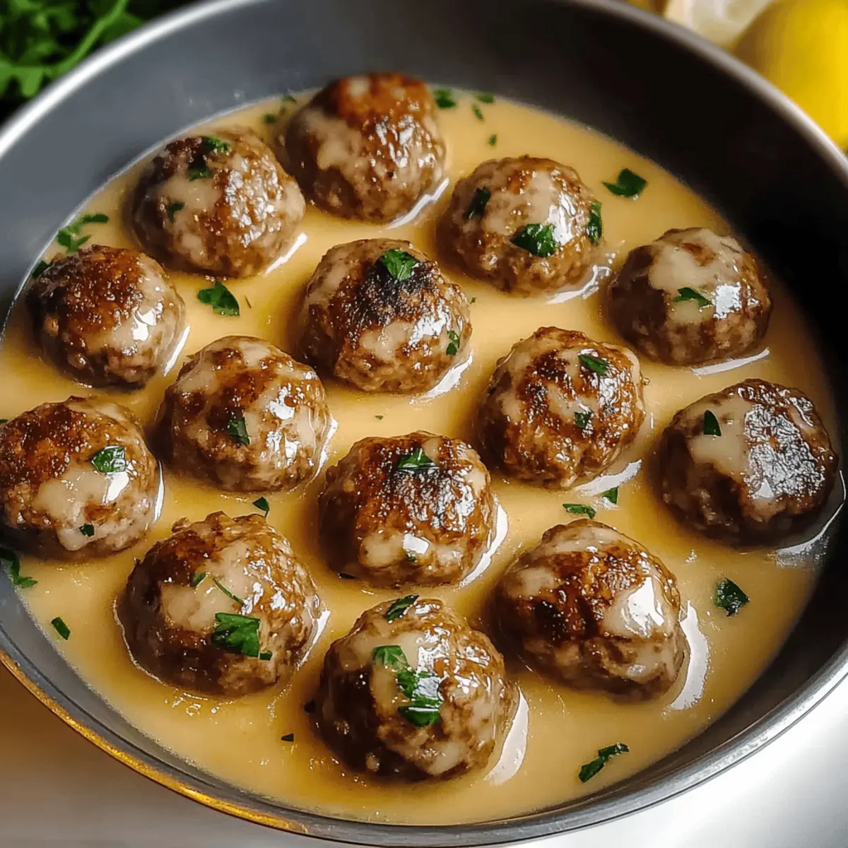 Walking into my kitchen, the air is alive with the tantalizing fragrance of savory meatballs simmering in a creamy lemon sauce. These Savory Meatballs in Lemon Sauce, also known as Greek Keftedes, are not just a quick dinner option; they’re a comfort meal that can transport you straight to the sun-drenched shores of Greece. With just 30 minutes of prep, you’ll have a dish that’s both pleasing to the palate and easy on the schedule, perfect for any busy weeknight. The lively zesty notes of lemon combined with the tender meatballs create a comforting harmony that’s sure to impress, whether you’re serving family or guests. Ready to bring a taste of Mediterranean magic into your dining experience? Let's dive into this delightful recipe together!