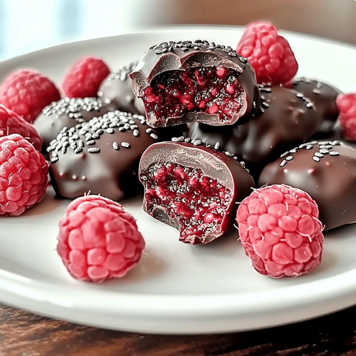 As the sun streams through my kitchen window, something irresistible is bubbling in my mind—Vegan Chocolate Raspberry Chia Freezer Bites. Just imagine a wholesome treat that combines the tangy sweetness of fresh raspberries with the rich embrace of dark chocolate. This no-bake delight only requires four simple ingredients, making it a breeze to whip up for a sunny afternoon or your next gathering. What’s best? Not only are these bites vegan and gluten-free, but they’re also packed with nutrients and sure to satisfy any sweet tooth without the guilt. If you’re seeking a fun, healthy snack to elevate your dessert game, you’re in the right place! Ready to discover how to make these delightful freezer bites? Let’s dive in!